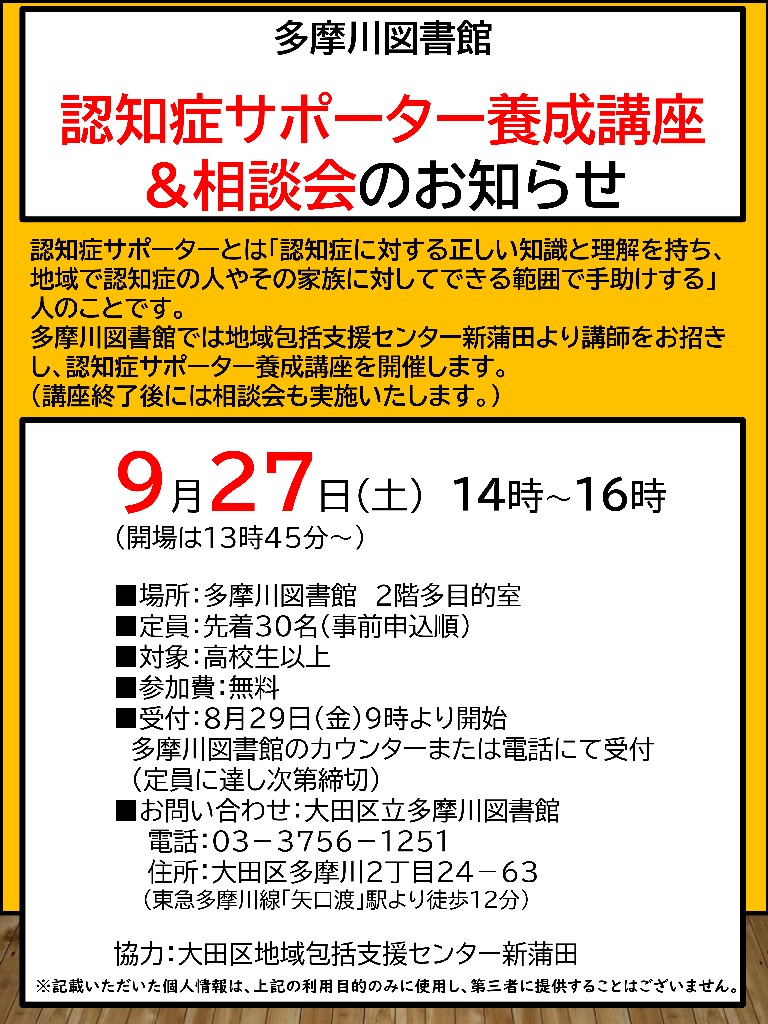 多摩川図書館 認知症サポーター養成講座